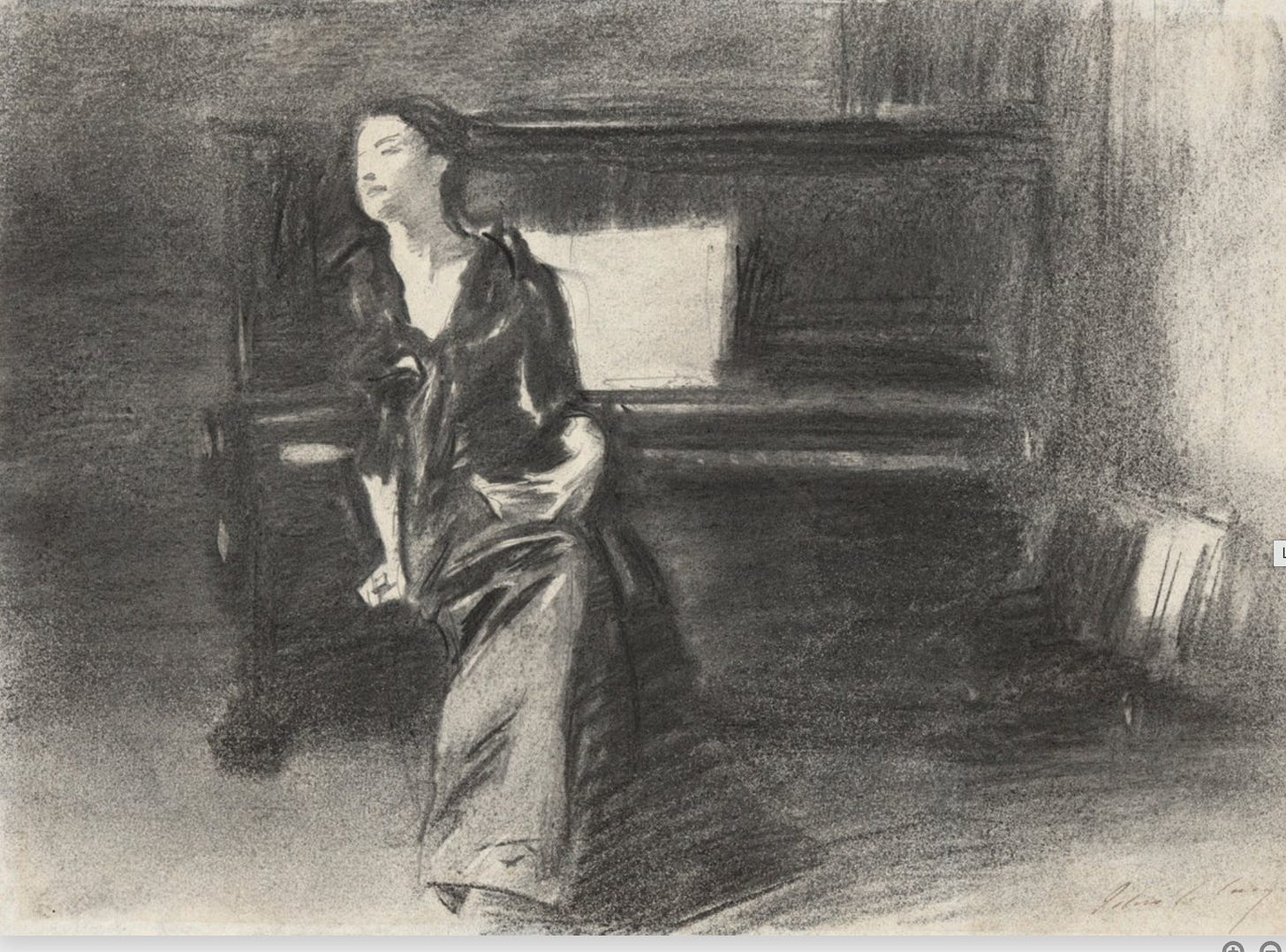 Sargent had a private love of music that he shared in the confines of his painting studio. He would sit at the piano and play complex Fauré compositions for friends and portrait clients. His musical intelligence was serious enough that contemporaries suggested he could have had a parallel career as a musician.
