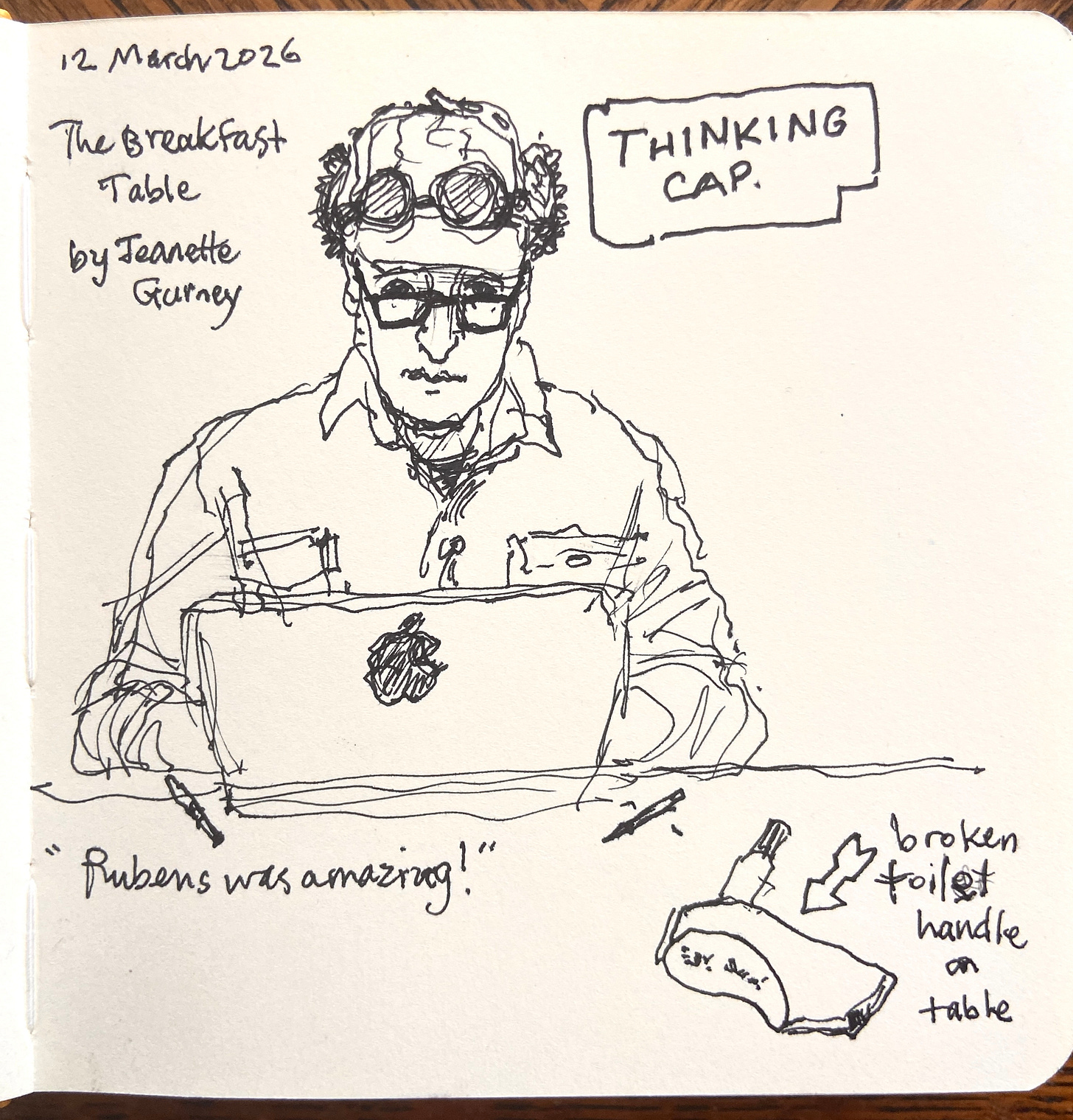 The toilet handle in Jeanette's lovely sketch reminds me of another show-person artist, Fox.